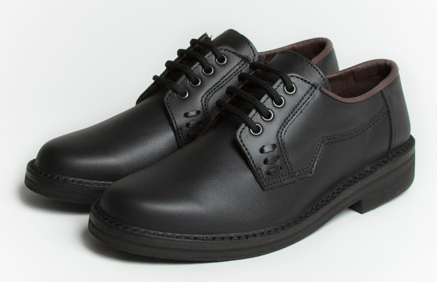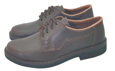 Business or dress shoe, leather upper, pigskin lining, low profile rubber sole unit.